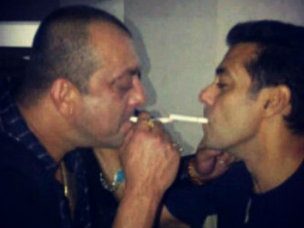 બાબા સંજય દત્ત અને સલમાન ખાન છે ચડ્ડી બડ્ડી માટે જ તે બન્ને યાર સાથે મળીને આ રીતે પી રહ્યા છે સિગરેટ.